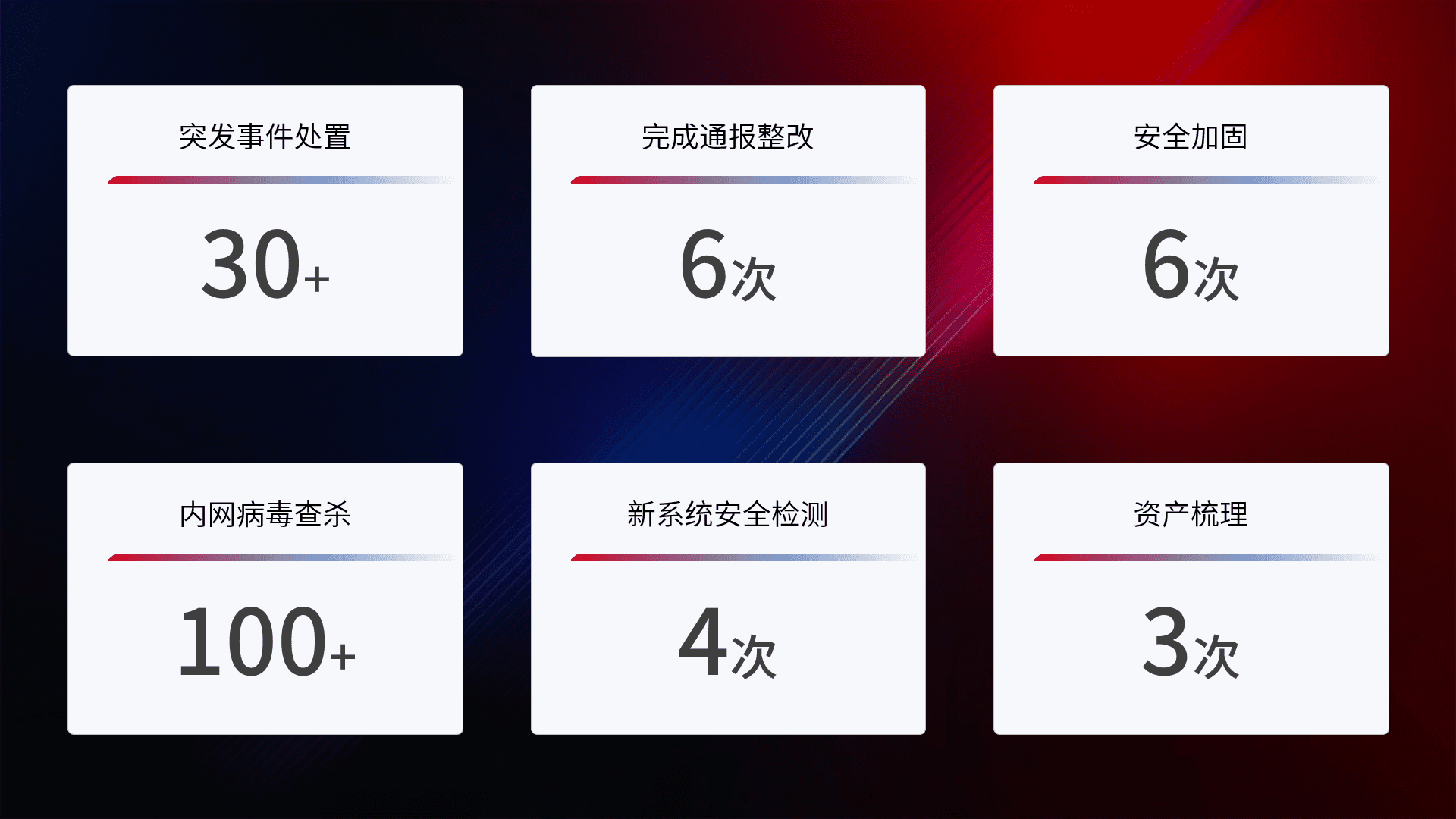 网络安全加固与风险管理:通过技术加固手段,,,如加强区域隔离,,缩减攻击内网横向移动的范围;优化现有网络安全管理制度,,,,降低网络威胁暴露面,,,,减少被黑客攻击的可能性。。